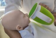 W ramach zajęć praktycznych słuchaczki kierunku „Opiekunka dziecięca” ćwiczą techniki karmienia dzieci i niemowląt, przygotowując się do pracy w środowisku opiekuńczym i wychowawczym.