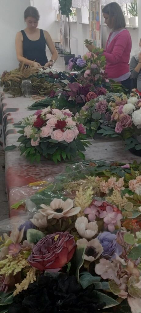 Na ostatnich zajęciach nasze słuchaczki tworzyły kompozycje nagrobne z kwiatów sztucznych i suszonych.
