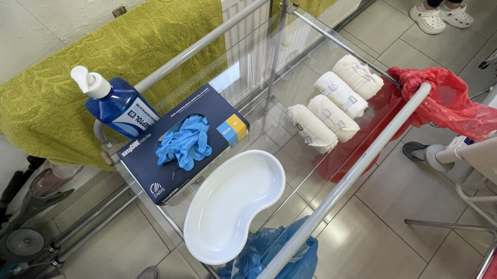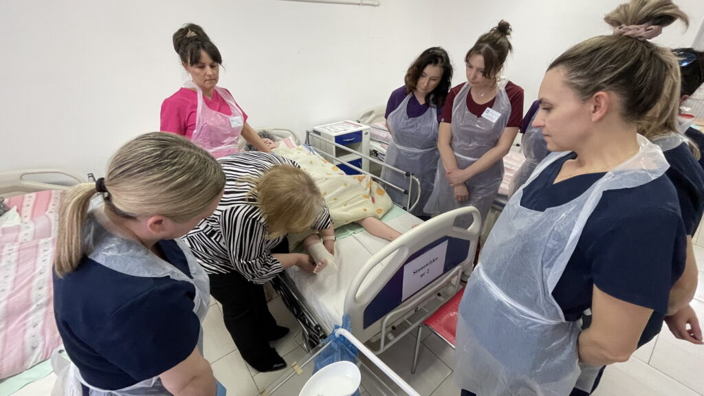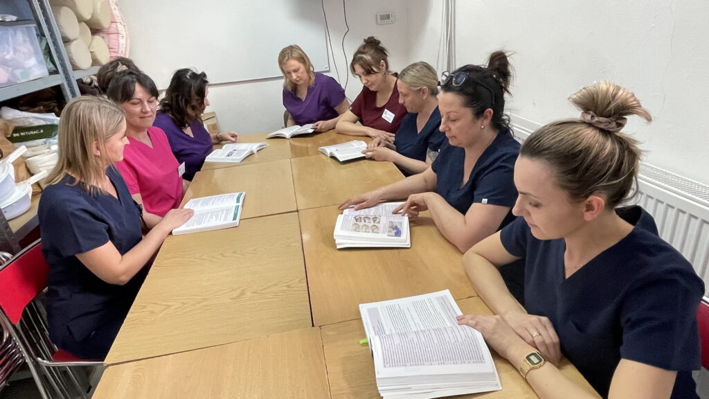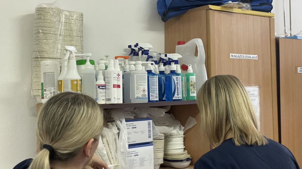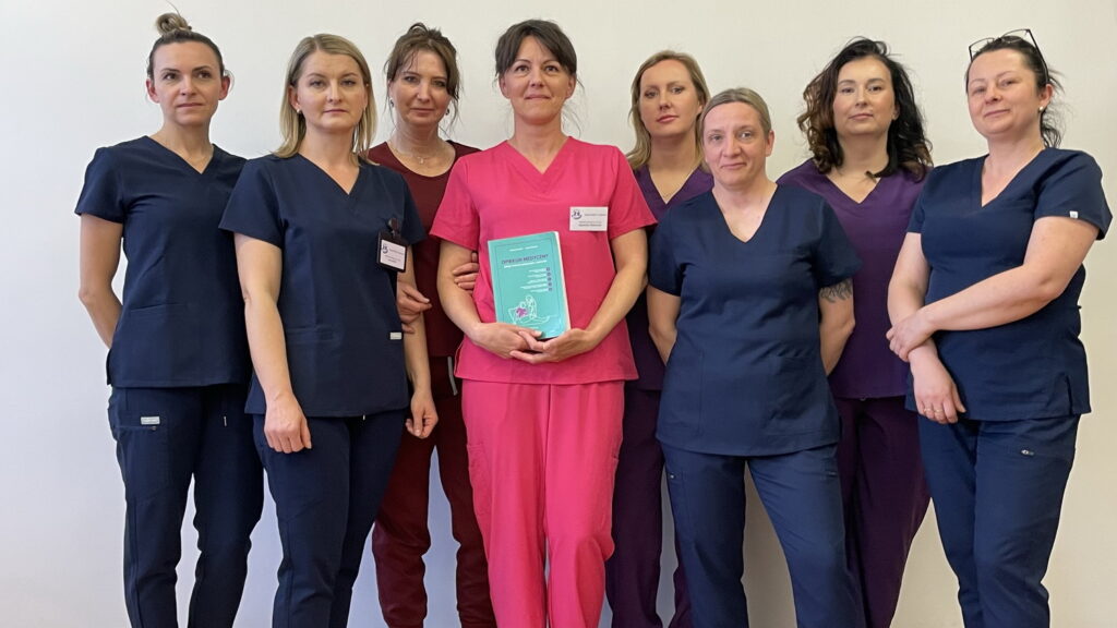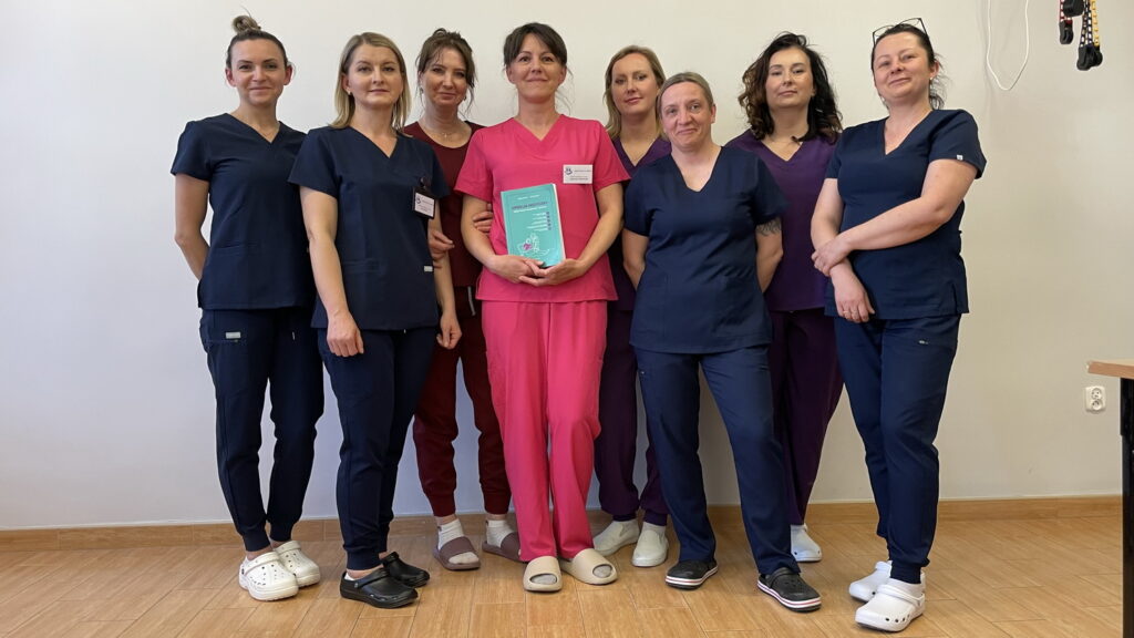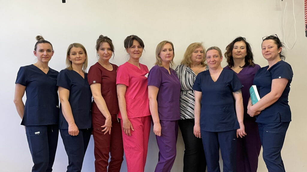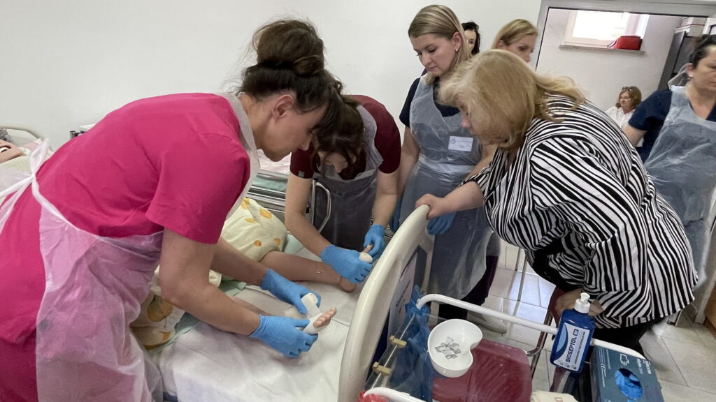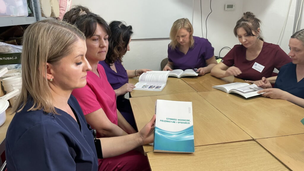 Słuchaczki kierunku opiekun medyczny na przedmiocie pracownia zabiegów medycznych ćwiczyły bandażowanie kompresyjne kończyn dolnych pod kierunkiem nauczycielek: Urszuli Rybak i Iwony Pawluczuk.
