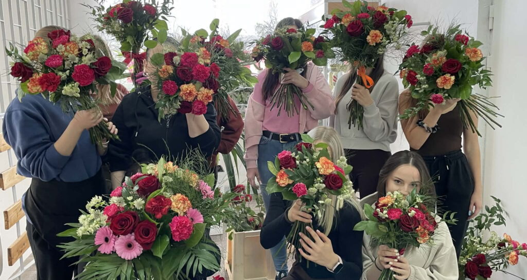 Tematem zajęć było wykonywanie bukietów okolicznościowych ze spiralnym ułożeniem łodyg – jednej z podstawowych i niezwykle istotnych technik w pracy florysty.