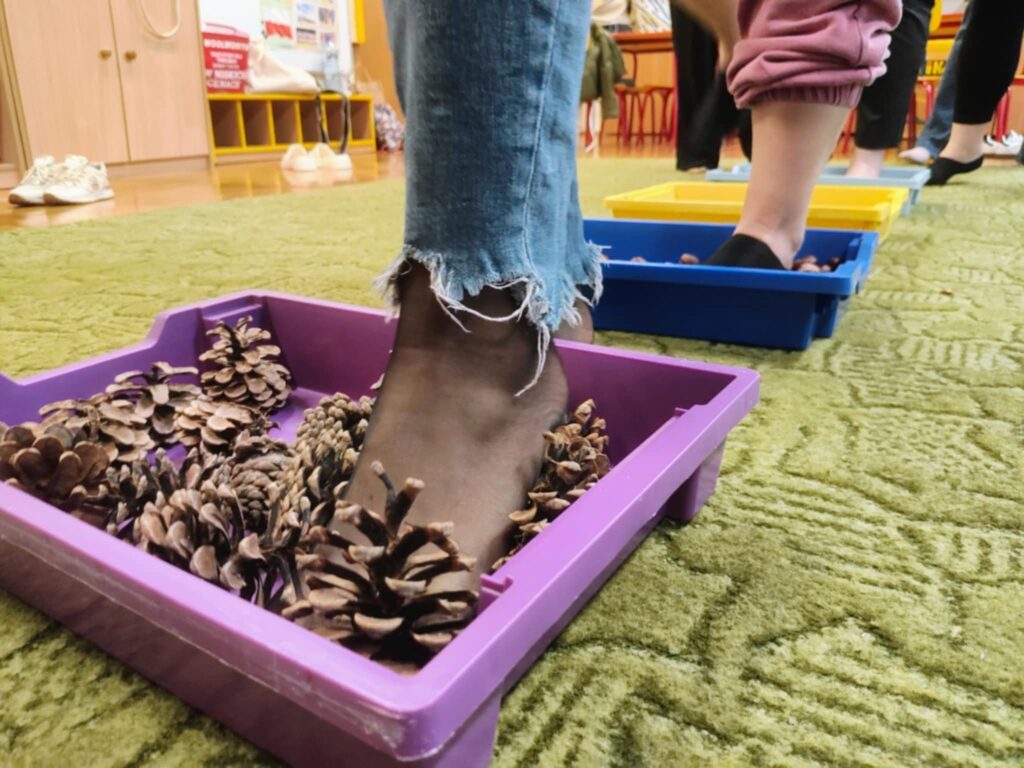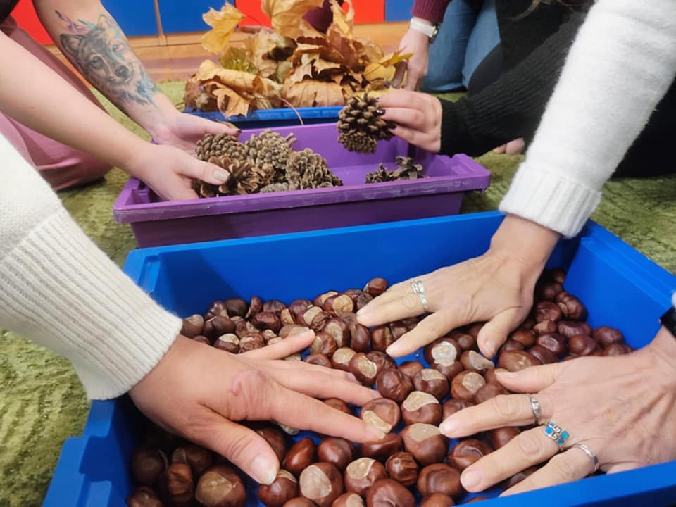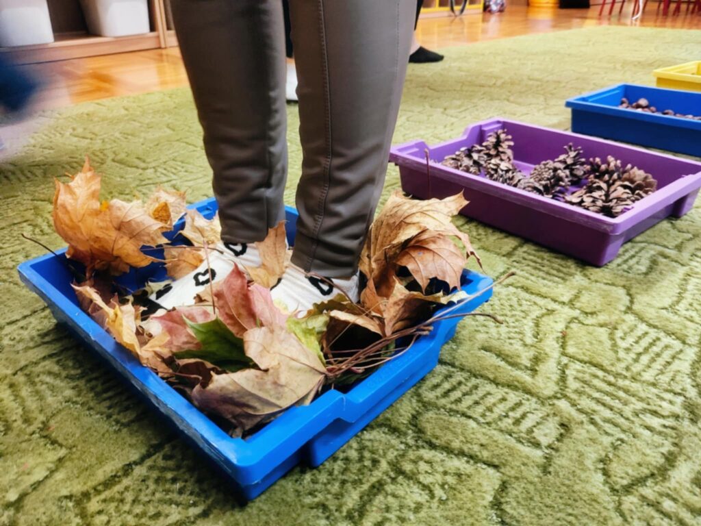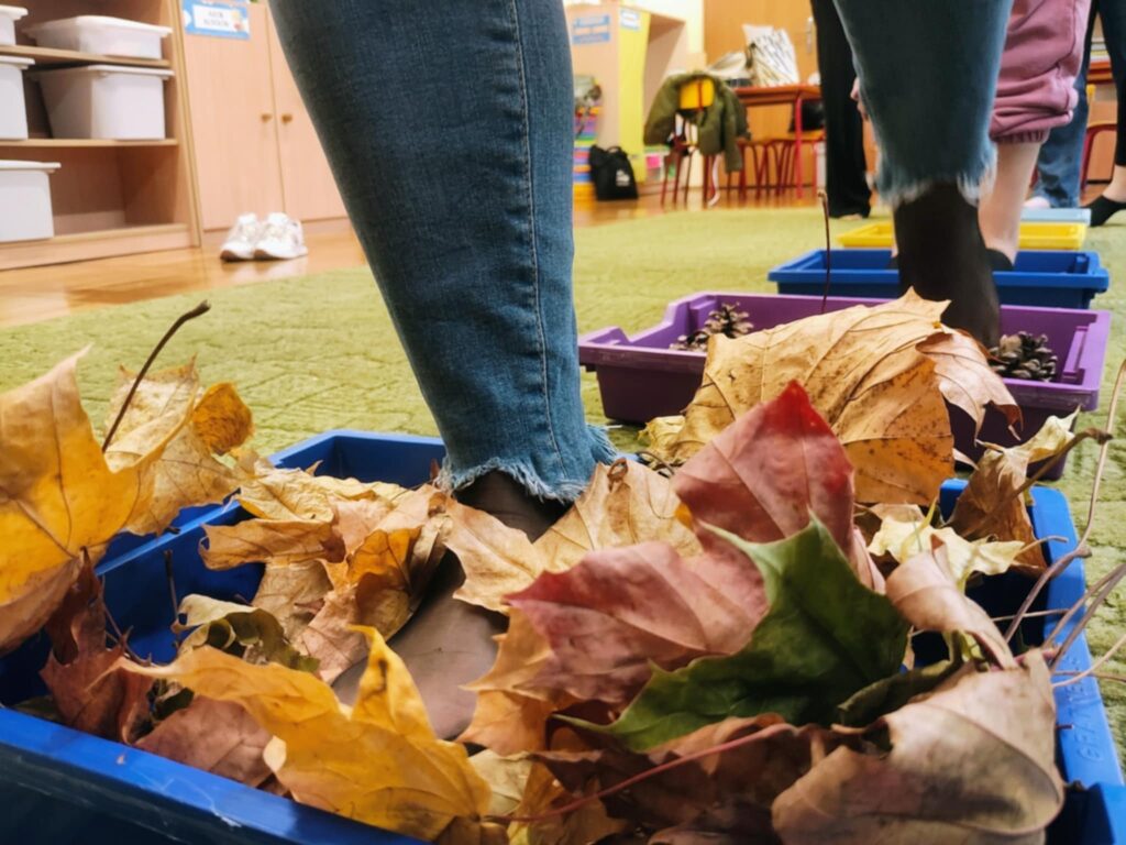 Dzięki temu, dzieci będą mogły odkrywać różne faktury i zapachy jesieni – spacerując po liściach, kasztanach, szyszkach i mchu.