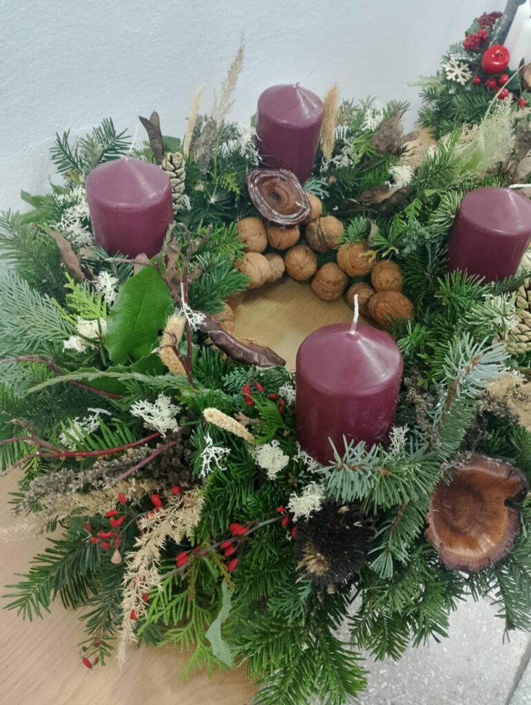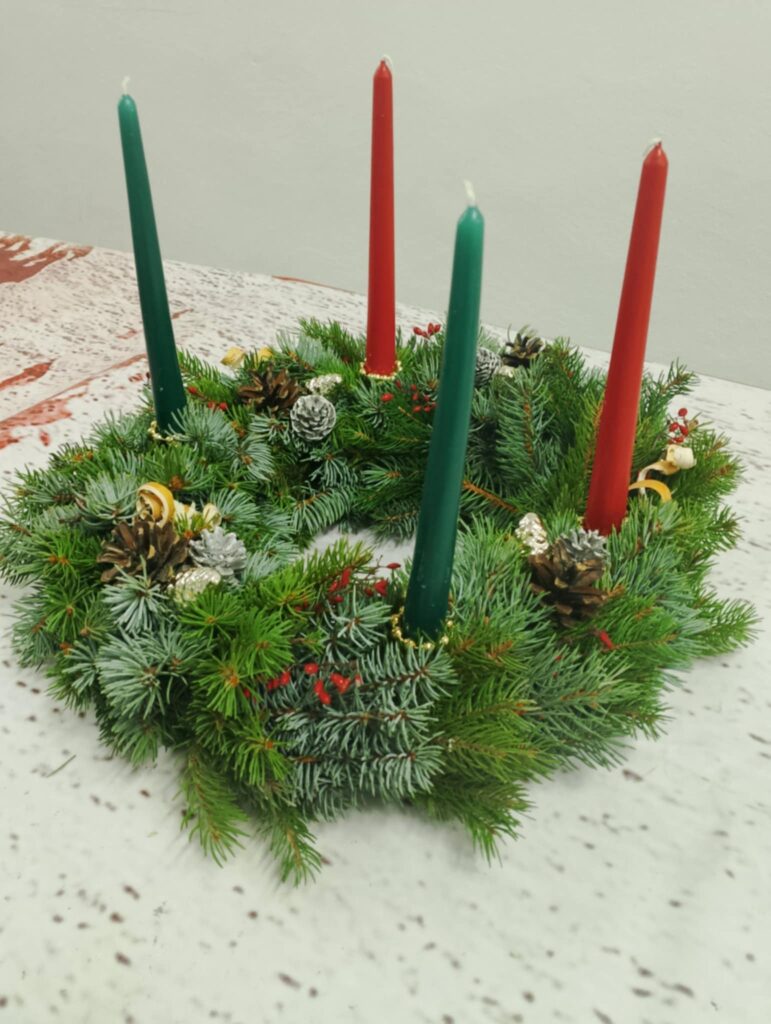 Na zajęciach praktycznych nasi słuchacze Szkoły Policealnej w zawodzie Florysta tworzyli piękne wianki adwentowe.
