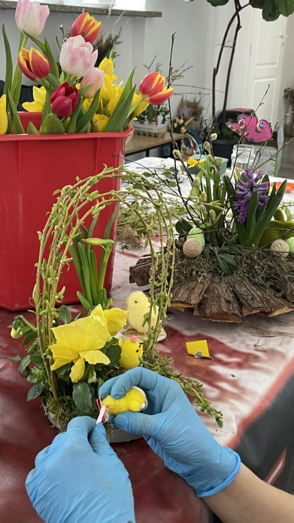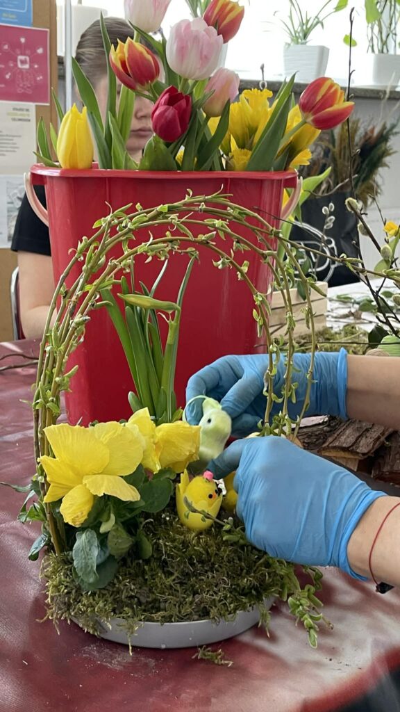 Słuchaczki szkoły policealnej na kierunku florysta miały okazję wykazać się swoją kreatywnością, tworząc stroiki wielkanocne w stylu wegetatywnym.