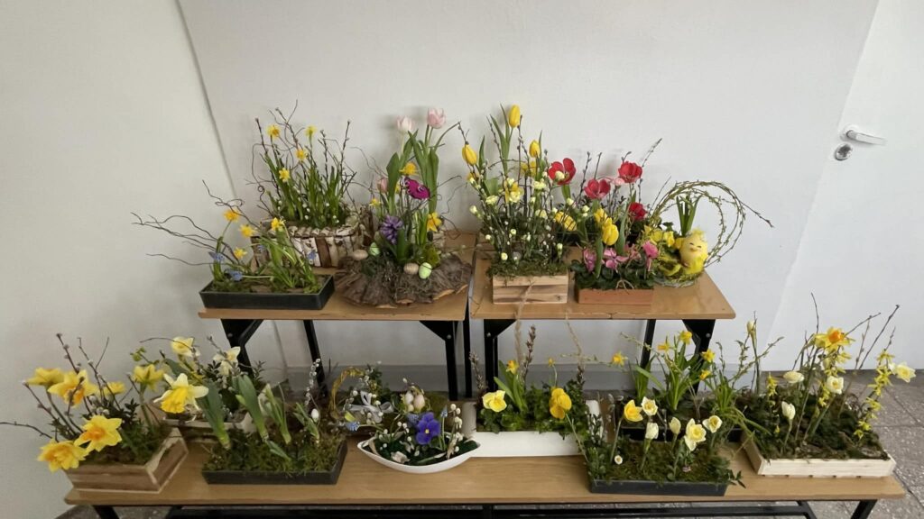 Kompozycje zachwycają naturalnością, harmonią oraz wykorzystaniem różnorodnych materiałów roślinnych – gałązek, mchu, kwiatów i delikatnych dekoracji świątecznych.